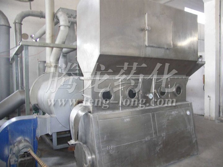 沸腾干燥,又称流化床,它是由空气过滤器、加热器、沸腾床主机,旋风分离器,布袋除尘器、高压离心风机、操作台组成,由于干燥物料的性质不同,配套除尘设备时,可按需要考虑,可同时选择旋风分离器、布袋除尘器,也可选择其中一种,一般来说比重较大的如冲剂及颗粒料干燥只需选择旋风分离器,比重较轻的小颗粒状和粉状物料需配套布袋除尘器,并备有气力送料装置及皮带输送机供选择。